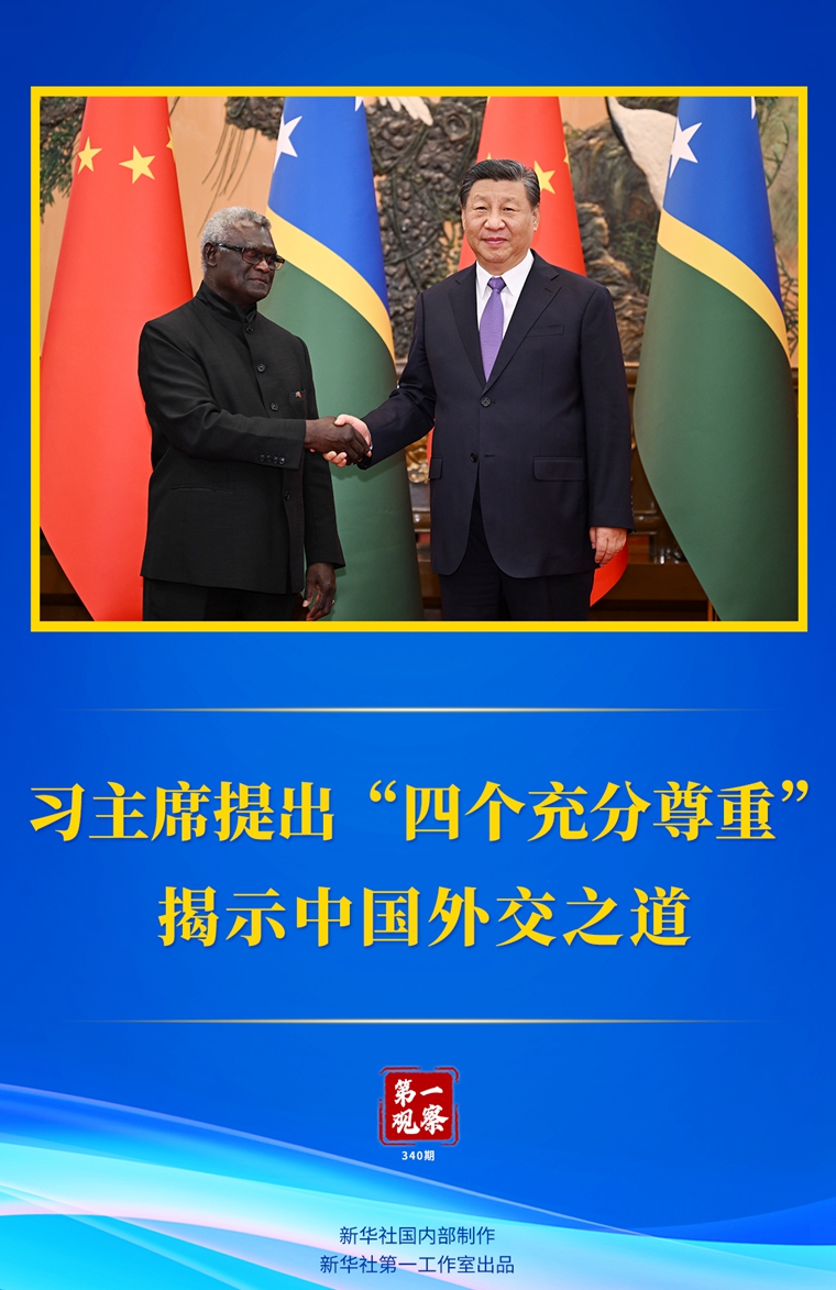 7月10日下午,國(guó)家主席習(xí)近平在人民大會(huì)堂會(huì)見(jiàn)來(lái)華進(jìn)行正式訪問(wèn)的所羅門(mén)群島總理索加瓦雷。會(huì)見(jiàn)中,習(xí)近平主席指出,中國(guó)的太平洋島國(guó)政策秉持“四個(gè)充分尊重”——
