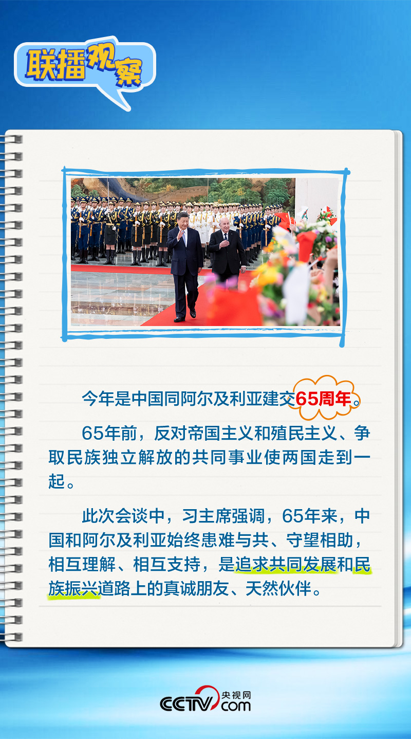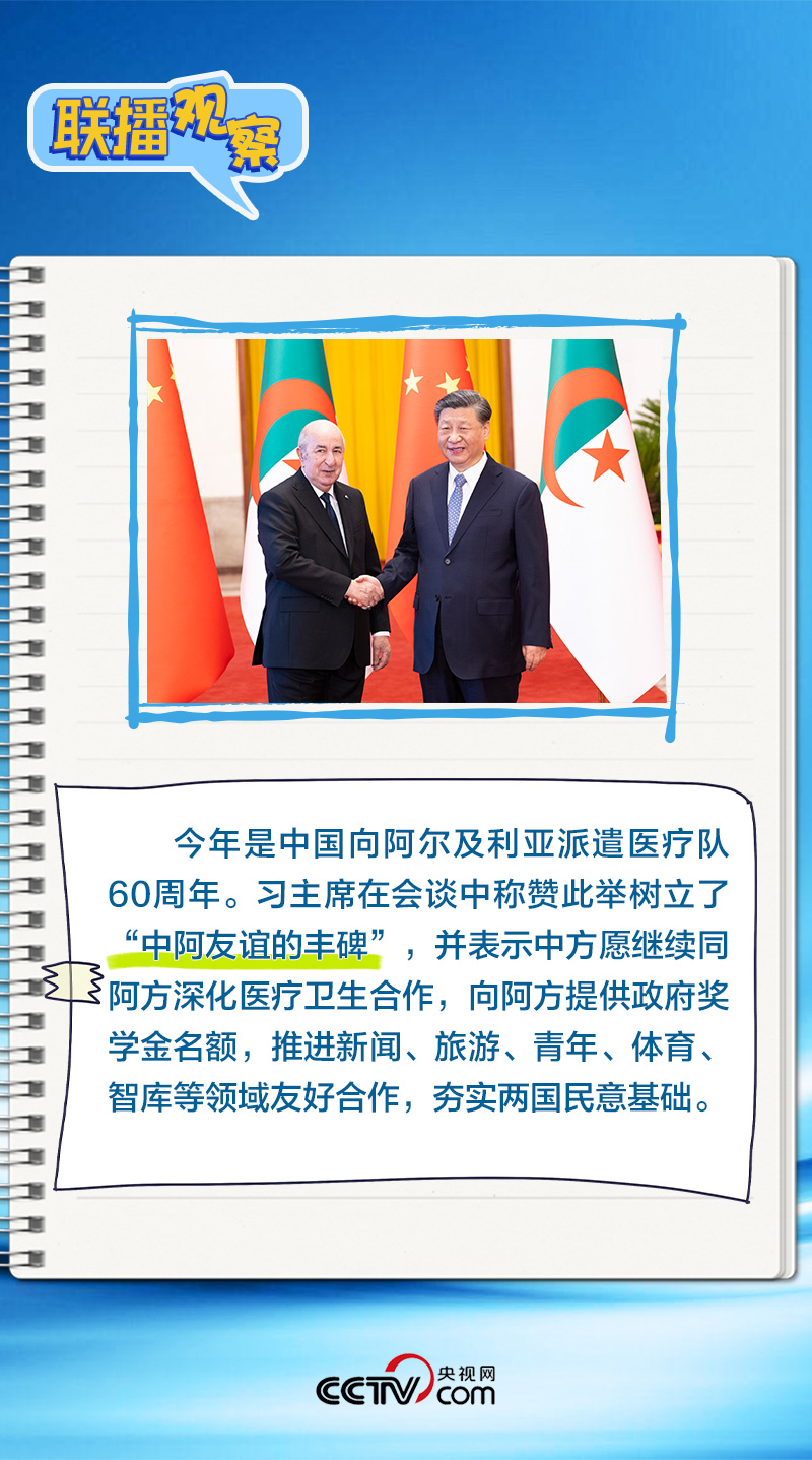 會(huì)談中,習(xí)主席特別提到,今年是中國(guó)向阿爾及利亞派遣醫(yī)療隊(duì)60周年,并稱(chēng)贊此舉樹(shù)立了“中阿友誼的豐碑”。中阿傳統(tǒng)友誼深厚,兩國(guó)始終相互尊重、平等相待、彼此支持,締造了一段段友好交往的佳話。