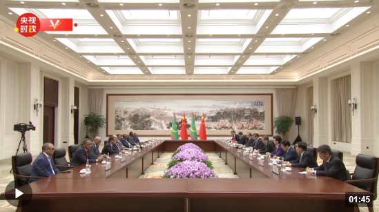 在同毛里塔尼亞總統(tǒng)加茲瓦尼的會見結(jié)束后,兩國元首共同見證簽署關(guān)于共同推進“一帶一路”建設(shè)的合作規(guī)劃。