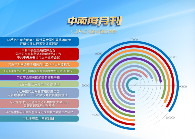 央視網(wǎng)《中南海月刊》運(yùn)用智能大數(shù)據(jù),與您一起回眸七月,從關(guān)系到新征程開局起步、中國式現(xiàn)代化行穩(wěn)致遠(yuǎn)的大事要事中,感受實(shí)干為筆、擔(dān)當(dāng)為墨,看宏偉藍(lán)圖如何轉(zhuǎn)化為高質(zhì)量發(fā)展“實(shí)景畫”。