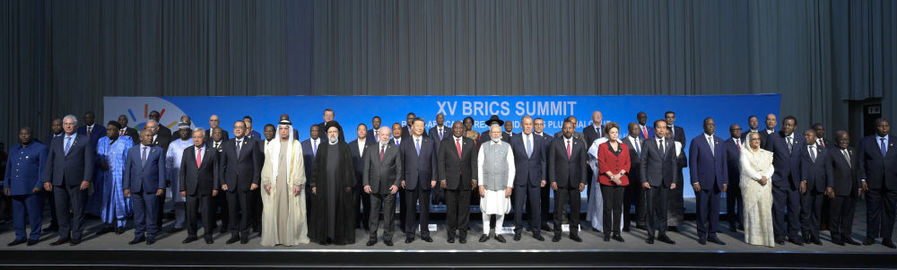 會(huì)議由南非總統(tǒng)拉馬福薩主持,巴西總統(tǒng)盧拉、印度總理莫迪、俄羅斯總統(tǒng)普京(線上)和60多位非洲國(guó)家及其他新興市場(chǎng)和發(fā)展中國(guó)家領(lǐng)導(dǎo)人或代表,以及聯(lián)合國(guó)秘書長(zhǎng)古特雷斯、新開(kāi)發(fā)銀行行長(zhǎng)羅塞夫等國(guó)際和地區(qū)組織負(fù)責(zé)人出席。這是與會(huì)領(lǐng)導(dǎo)人集體合影。新華社記者 李學(xué)仁 攝