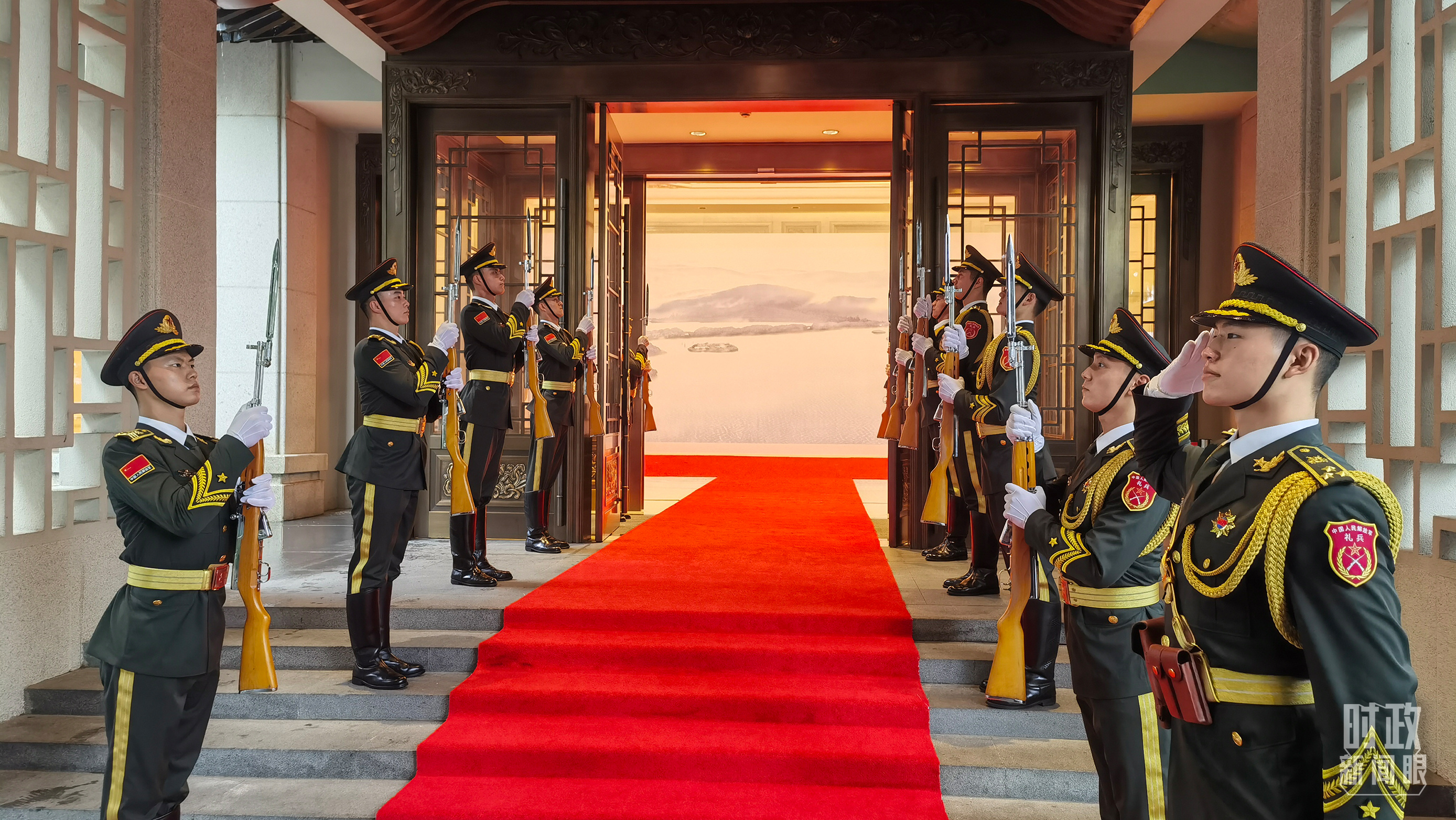 △雙邊會(huì)場(chǎng)外的禮兵。(總臺(tái)央視記者周志國(guó)拍攝)
