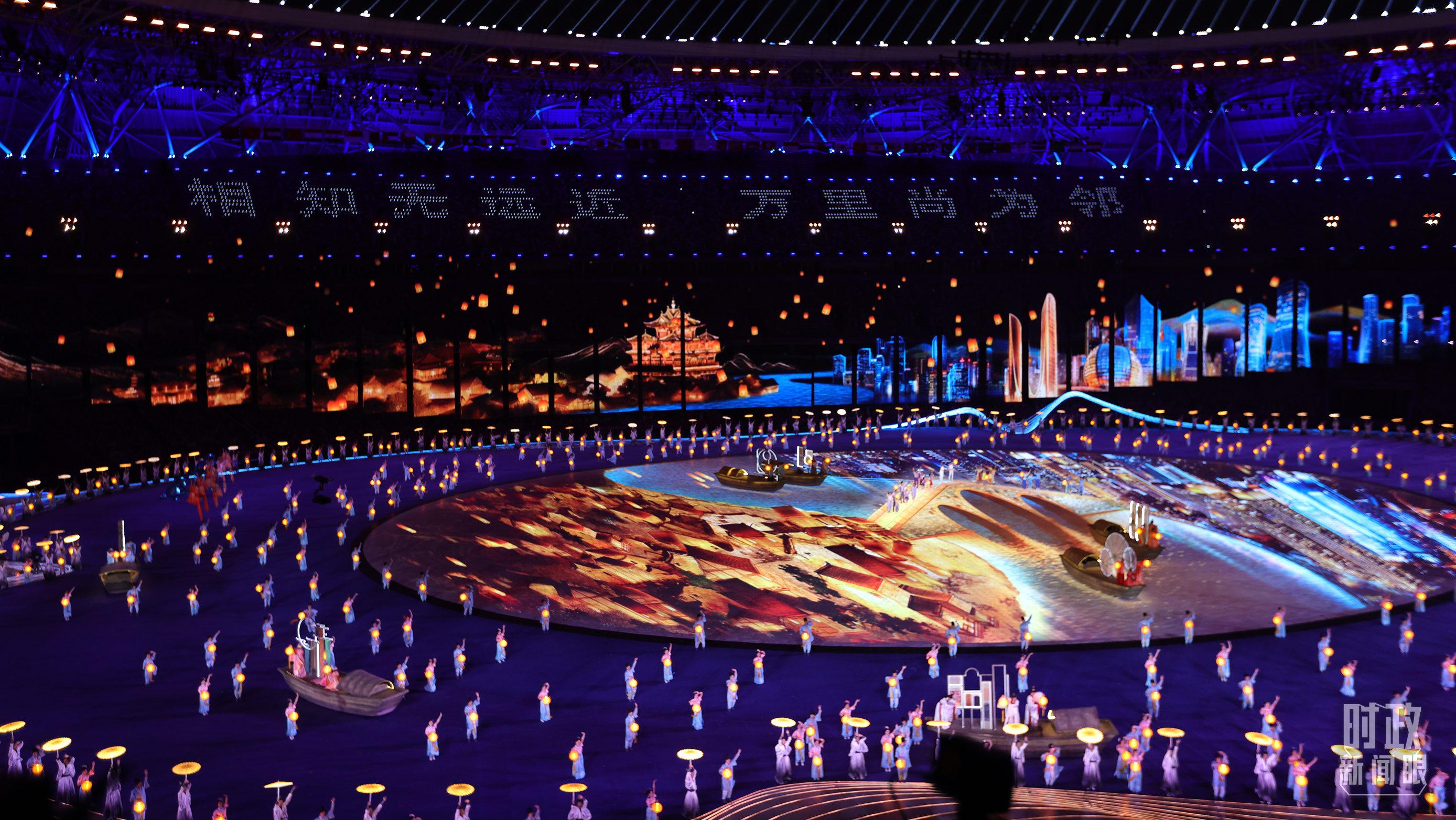 開幕式上,運(yùn)河風(fēng)、西湖景、錢塘潮,多次撲面而來(lái)。