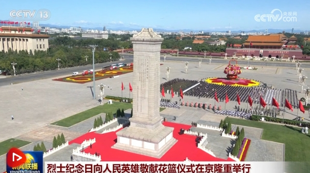 今天是我國第十個(gè)“烈士紀(jì)念日”。莊嚴(yán)的天安門廣場上,鮮艷的五星紅旗高高飄揚(yáng)。廣場中央,“祝福祖國”巨型花籃表達(dá)著對國家繁榮富強(qiáng)的美好祝福。人民英雄紀(jì)念碑巍然聳立,北側(cè)兩組花壇上白菊等鮮花組成的18個(gè)花環(huán),寄托著全體中華兒女對英烈的深情追思。