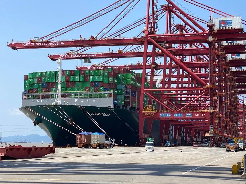 △圖為寧波舟山港梅山港區(qū)集裝箱碼頭。浙江寧波舟山港前10個(gè)月集裝箱吞吐量超3000萬(wàn)標(biāo)準(zhǔn)箱。