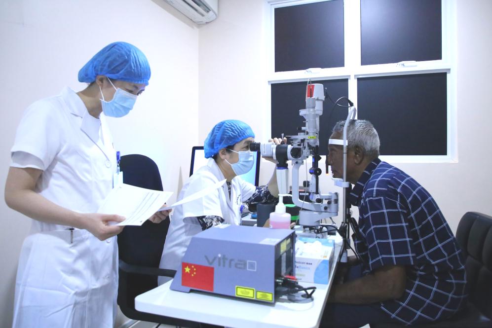 69歲的艾哈邁德·卡洛是中國醫(yī)療隊(duì)“光明行”活動(dòng)的獲益者。兩個(gè)兒子曾帶著患有眼疾多年的老人輾轉(zhuǎn)多家醫(yī)院,均因手術(shù)難度大而無法得到有效治療。2023年,中國醫(yī)療隊(duì)醫(yī)生經(jīng)過充分評(píng)估后,給老人成功實(shí)施了手術(shù)。術(shù)后揭開眼罩時(shí),老人家激動(dòng)地說:“醫(yī)生,我可以看到你的胸牌了,謝謝你!”老人的兒子也在社交媒體發(fā)帖說:“真誠感謝中國醫(yī)生。”除了治病,中方還著力培訓(xùn)當(dāng)?shù)蒯t(yī)務(wù)人員,力爭為當(dāng)?shù)卮蛟煲恢?ldquo;帶不走”的眼科專家隊(duì)伍。